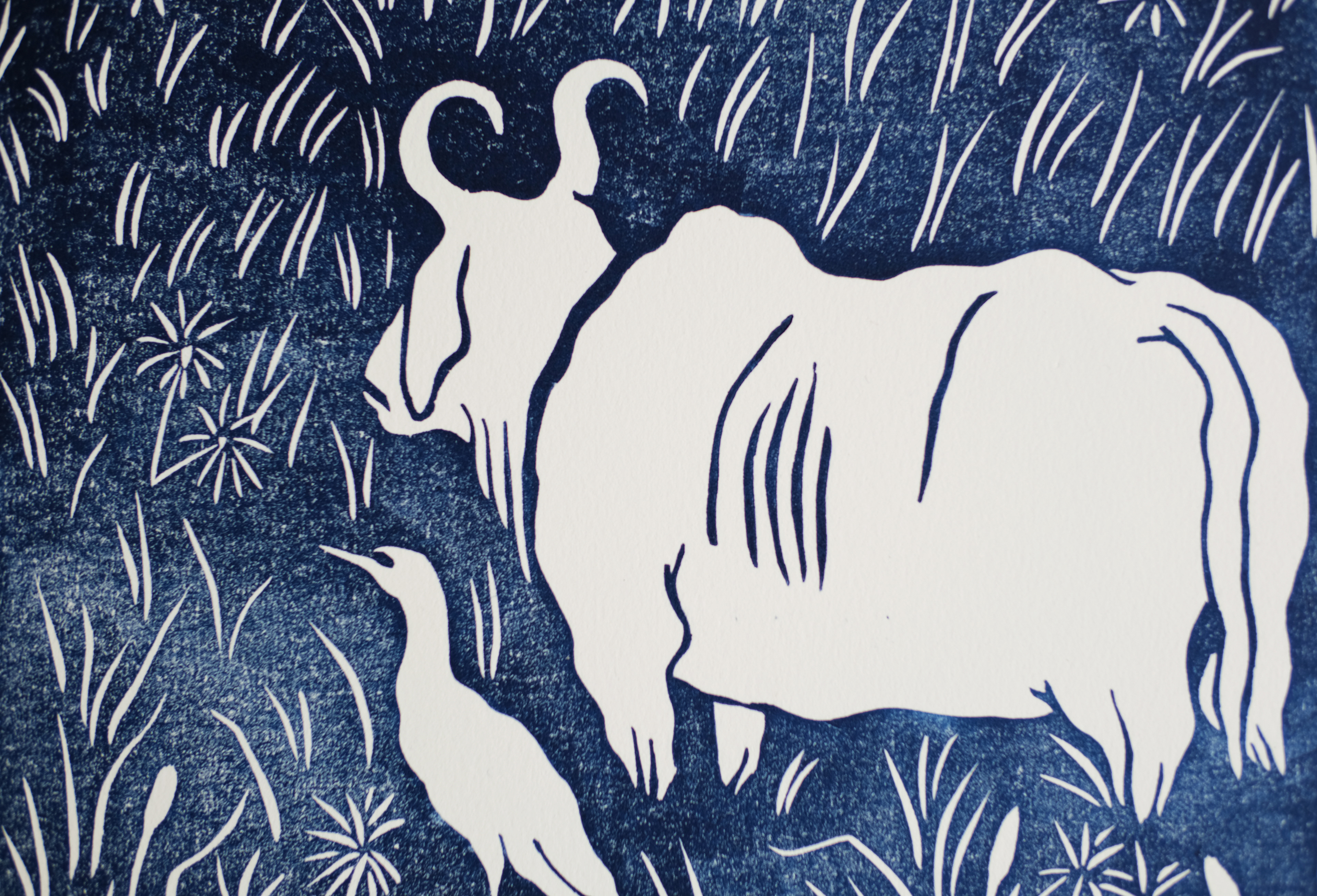 Linocut "Les hérons garde-bœuf" 1 and 2